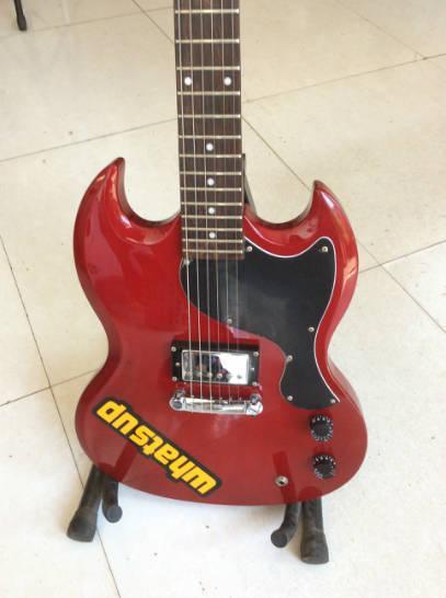 物品名稱及描述:Epiphone-SG款電吉他,升級了韓產(chǎn)拾音器,現(xiàn)為音色旋鈕帶切單功能。換下來的拾音器(Epi)還在,可以一起贈送。此琴為正品,金屬部件都帶鋼印,帶線帶背包!****!