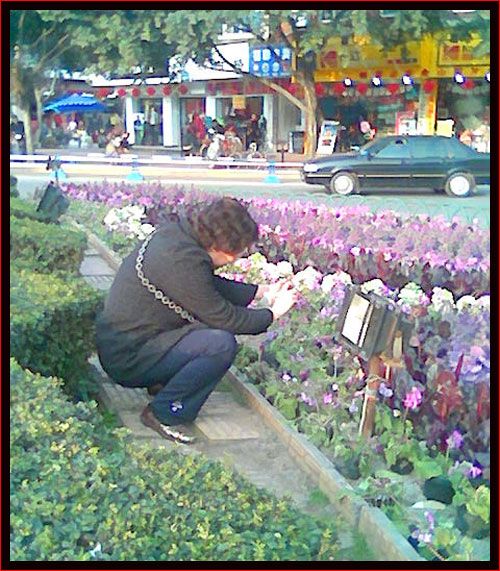 剛才看了圖片,自己禁不住對(duì)著電腦哈哈大笑,初七那天下午,我們?nèi)ピ缡诺娜脡炆霞漓?回家路過噴水池,峨眉山標(biāo)致塑像"美女托日出",在藍(lán)天下閃著金光,我立即打開相機(jī),尾隨的丈夫,用他的手機(jī)把我神態(tài)悄悄拍下來了,哈哈,回家一看,他拍的真不賴!其實(shí)呀,不瞞你說,我的這點(diǎn)攝影興趣和水平,都是在他的鼓勵(lì)和支持下學(xué)的!
