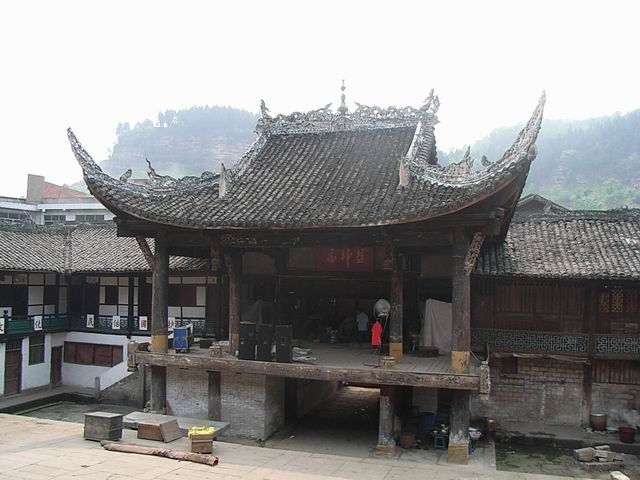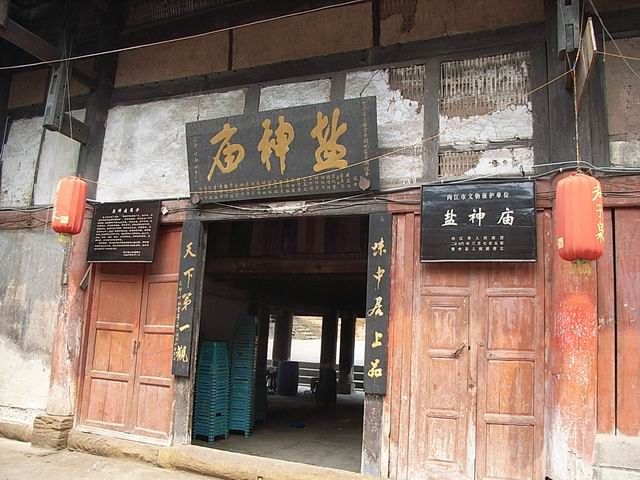 其五里長街全是竹、木、泥串架結(jié)構(gòu)的騎店鋪式的青瓦建筑,素有“九宮一寺八廟”之稱,可惜因保護(hù)不善,好多廟宇和建筑已經(jīng)被破壞,現(xiàn)今保存最為完好的,也最為有名的是全國唯一敬奉管仲為鹽神的鹽神廟。羅泉因清朝中葉發(fā)現(xiàn)鹽井而聞名,作為那時繁華的見證,鹽神廟雖經(jīng)百年風(fēng)雨仍不失昔日豐采。原西方滲透傳經(jīng)布道的福音堂,因羅泉井會議—四川保路運動在此決策而名垂青史,如今這里成為老年會所,經(jīng)過時聽得川劇鑼鼓聲聲,品來自另是一番滋味了。