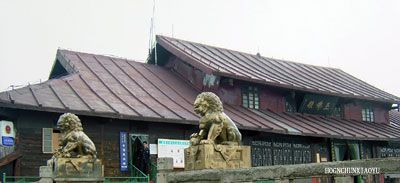肚子過了“臥龍崗”,我們起身奔金頂峰(金頂峰上有華藏寺,華藏寺最高一層殿為金殿)。拾階而上,耳畔傳來一陣陣 “嗚、嗚、嗚”的聲音,還不到兩點鐘呢,只見工人們在升降機的配合下正在拆除簇圍華藏寺的腳手架,五一節(jié)屈指可算,金殿一期即土建和外圍工程改造臨近尾聲。據(jù)丈夫認識的在這里的一個施工負責人介紹,華藏寺大規(guī)模改造始于2004年秋,此改造是89年重建后的第一次,上面下了死命令,一期工程趕在五一節(jié)前交工驗收。從10份接下工程時候,這里就下雪,他們燒起一爐爐火,將混凝土灰漿圍在中央保持施工要求的溫度,可想而知施工的難度。