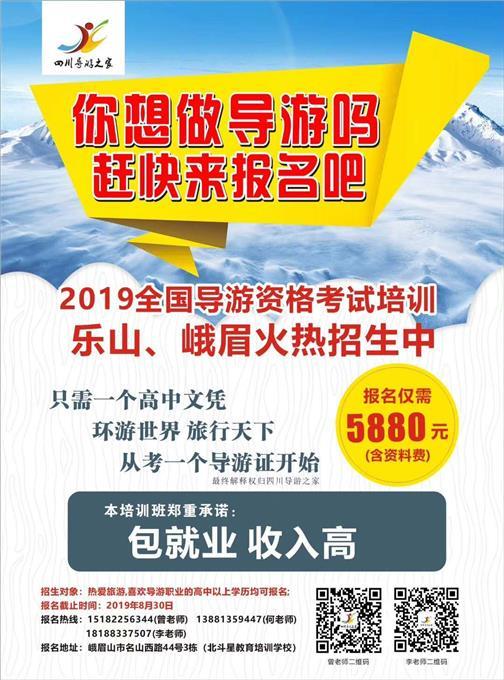 2019全國導(dǎo)游資格考試培訓(xùn),樂山,峨眉火熱招生中。包就業(yè),收入高。