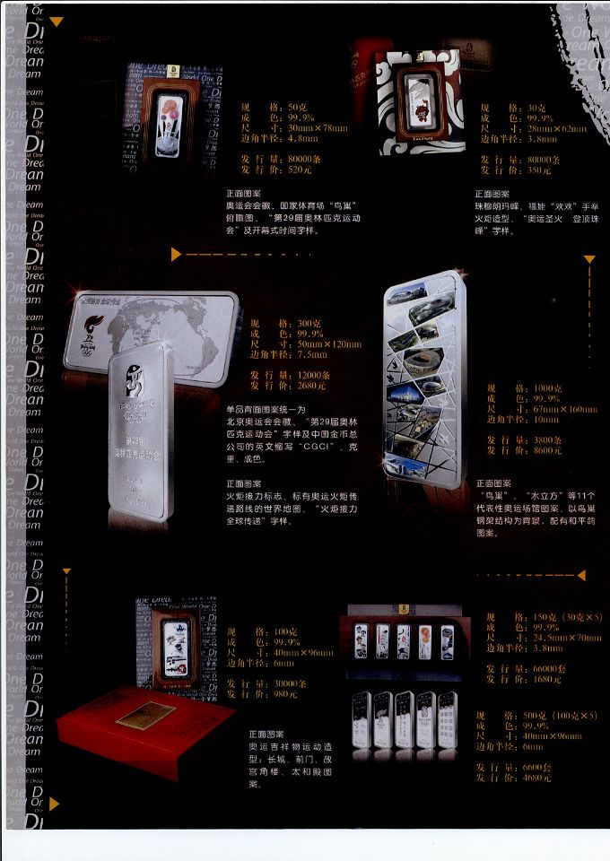 1、北京奧組委授權(quán);2、中國(guó)金幣總公司發(fā)行;3、北京奧運(yùn)會(huì)特許商品;4、99.9%高純度奧運(yùn)彩色銀條