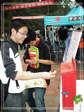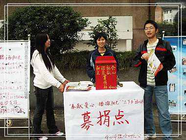 第二天一大早,募捐活動(dòng)便開始了,有些協(xié)會(huì)人員上午有課,但他們一下課就來到募捐點(diǎn)開始自己的工作,連午飯都顧不上吃。晚上7點(diǎn),協(xié)會(huì)人員們拖著疲憊的身體卻帶著興奮的心情結(jié)束了為期兩天的募捐活動(dòng)。 本次募捐活動(dòng),通過西南交通大學(xué)峨眉校區(qū)校團(tuán)委、社團(tuán)聯(lián)合會(huì)以及鄧小平理論研究協(xié)會(huì)的共同努力,此次募捐活動(dòng)我們?nèi)〉昧撕艽蟮某晒,在全校也引起了?qiáng)烈的反響。