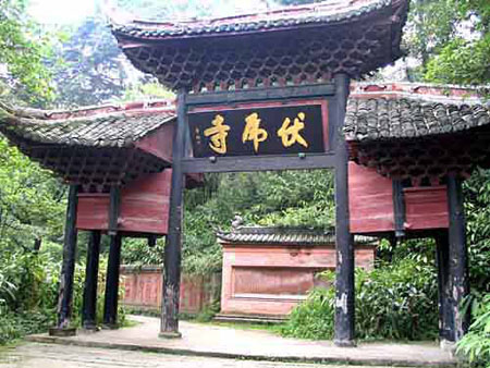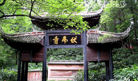 參伏虎寺位于報(bào)國(guó)寺側(cè)約1公里外,寺廟深藏于茂密的叢林之中,“密林藏伏虎”,極富神秘色彩。由于獨(dú)特的環(huán)境,搞日戰(zhàn)爭(zhēng)時(shí)期的1935年,蔣介石舉辦的峨眉軍訓(xùn)團(tuán)將校班便設(shè)在這里。次年,為躲避日軍飛機(jī)轟炸,四川本科的文學(xué)院和法學(xué)院也曾遷到此處。伏虎寺群山起伏,寺外杉、柏及楨楠多達(dá)10余萬(wàn)株,夏日一片清蔭,令人神清肌爽。尤為奇特的是,伏虎寺中幾處殿宇雖然被參天古森所覆蓋,屋 頂卻終年不見一片落葉,因此清康熙皇帝曾經(jīng)題賜匾額“離垢園”。
