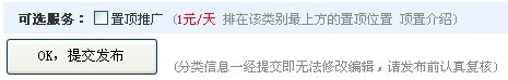 答:是在發(fā)布信息同時(shí)提交按鈕上面有個(gè),可先擇服務(wù)打上勾就可以進(jìn)行支付了。