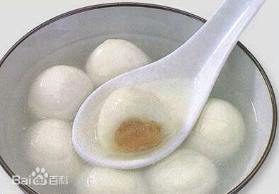 冬至必備的食品,是一種用糯米粉制成的圓形甜品,“圓”意味著“團(tuán)圓”“圓滿(mǎn)”,冬至吃湯圓又叫“冬至團(tuán)”。漢族民間有“吃了