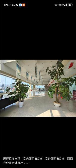 室內(nèi)面積350㎡,室外面積850㎡,兩間辦公室合計(jì)25㎡。