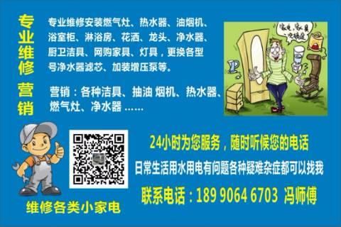 現(xiàn)有一個安裝團隊具有良好的態(tài)度和精湛的技術,有責任心。尋求長期穩(wěn)定的安裝單位,專業(yè)承接安裝業(yè)務并為您部提供專業(yè)的售后服務(以最低的價格和最優(yōu)質的服務提供工具和人員)。并嚴格按照安裝規(guī)范及質量完成。維修安裝燃氣灶~熱水器~油煙機~浴室柜~淋浴房~花灑~龍頭~凈水器~廚衛(wèi)潔具~家具~燈具~更換各型號凈水器濾芯~加裝增壓泵~各類生活家電維修等。