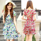 圓領(lǐng)短袖連衣裙仿真絲印花裙
