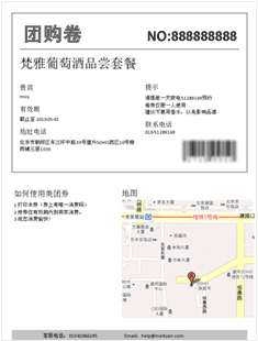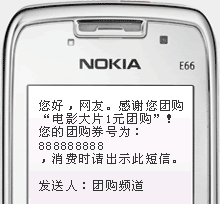 獲取團(tuán)購券有三種方式: 1. 打印(推薦方式) 如果身邊有打印機(jī),可以直接打印團(tuán)購券,也可下載到別處打印。 2. 發(fā)送手機(jī)短信可直接把團(tuán)購券發(fā)送到手機(jī)