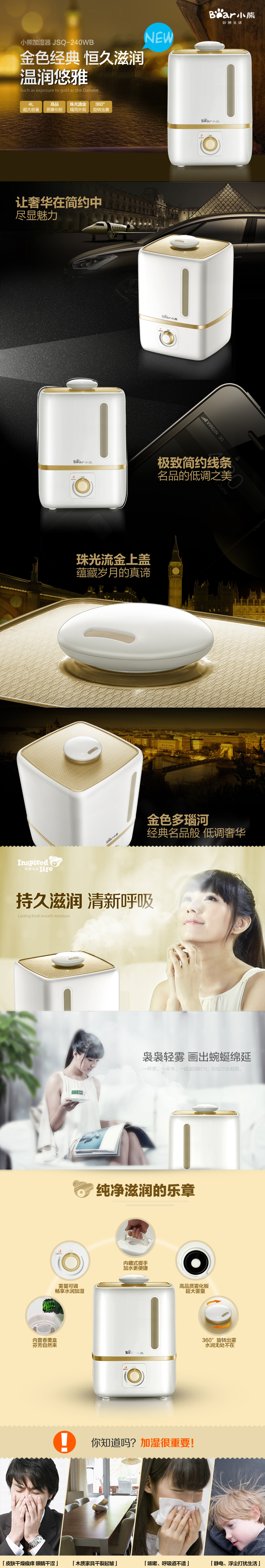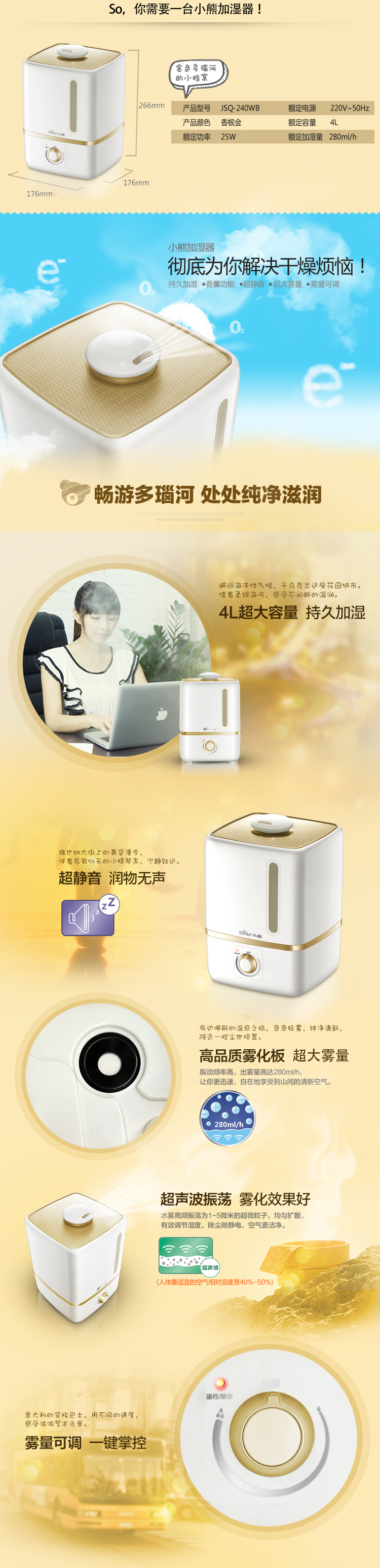 今日?qǐng)F(tuán)購(gòu):小熊4L大容量靜音加濕器JSQ-240WB經(jīng)典土豪金